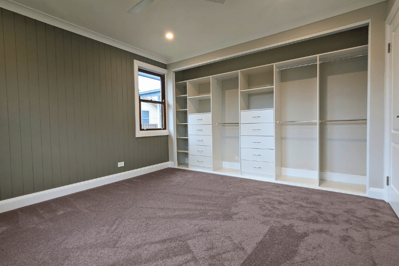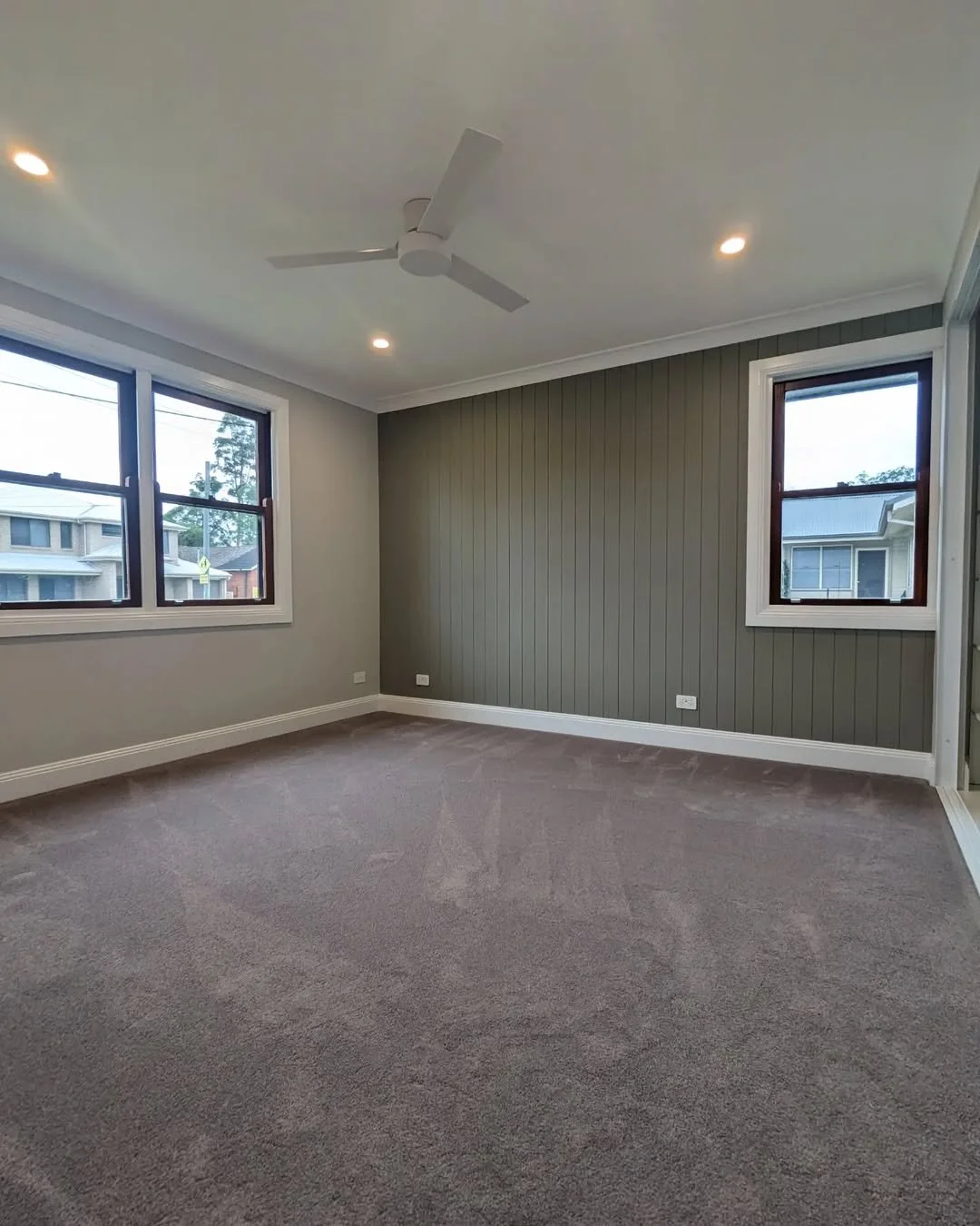 As well as installing a skylight to bring natural light to the centre of the home. Refurbishing the bedrooms with new carpet, built in robes and V-groove panelling as feature walls.